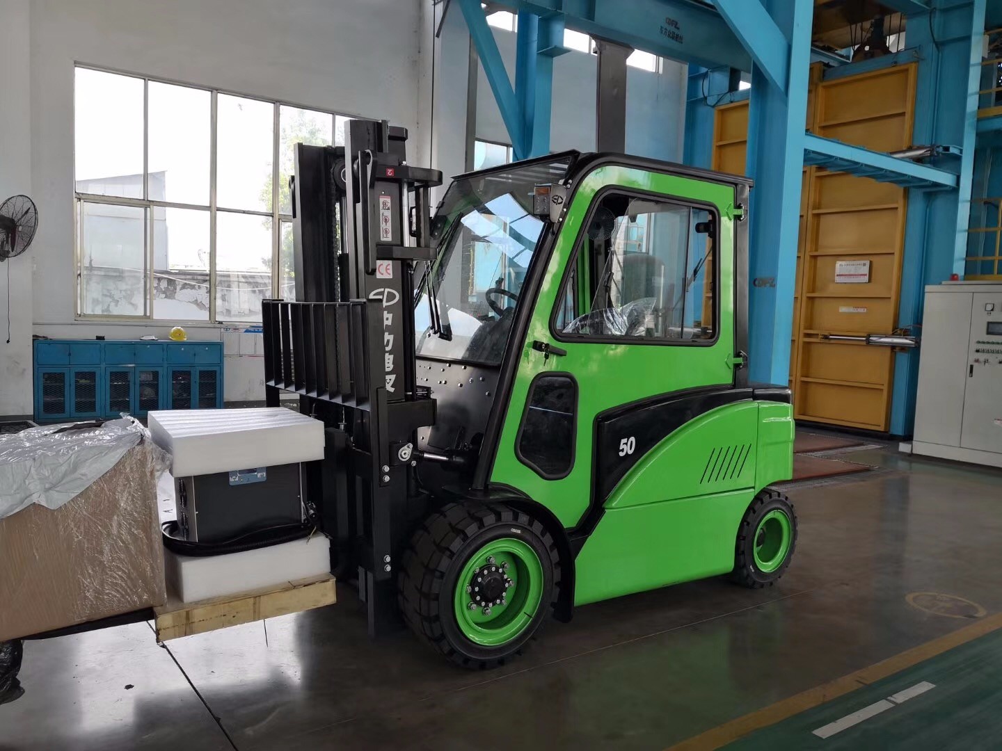 5噸鋰電叉車交付某機(jī)械設(shè)備生產(chǎn)企業(yè)使用