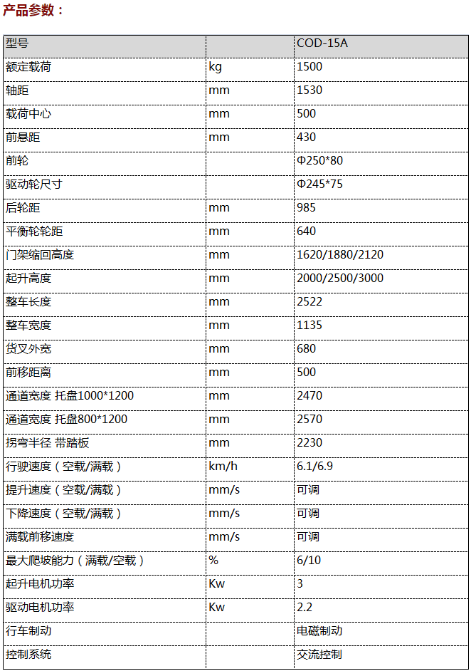 COD15系列1.5噸前移式堆高車(交流驅動)